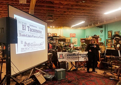 Flyer for Spring 2023, Reactivating Tucson's Downtown History, Location: Sosa Carrillo Mexican American Museum, 151 S. Granada Ave Friday January 27th, Save the date and join us for a panel discussion with historians and civic leaders Lydia Otero, Betty Villegas, and Mayor Regina Romero