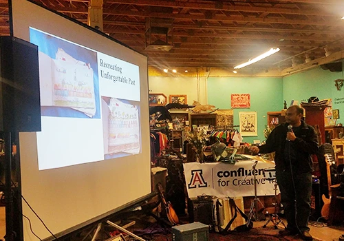 This fun, informal space allows scholars, artists, performers and community members to share innovative work and creative new ideas. These participatory events are open to the public and always free.